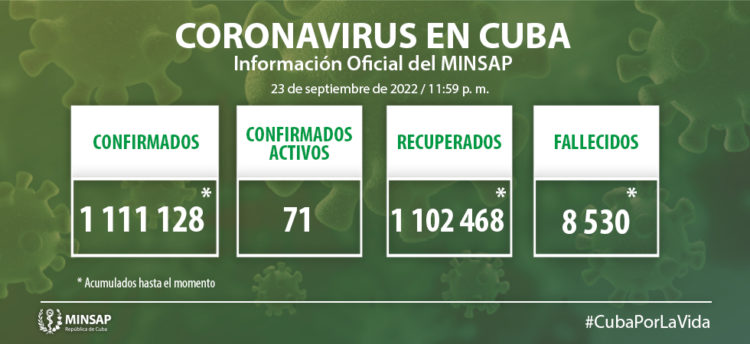 El Ministerio de Salud Pública (Minsap) de Cuba informó este sábado que resultaron positivas 19 muestras de las mil 874 analizadas para el control y vigilancia de la COVID-19.