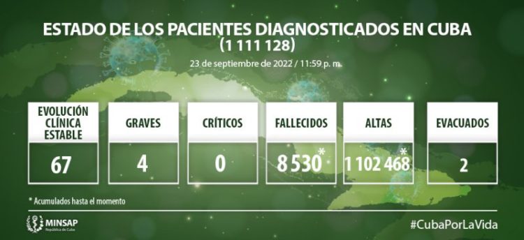 Del millón 111 mil 128 pacientes diagnosticados con la enfermedad, se mantienen ingresados 71, de ellos 67 con evolución clínica estable, mientras se atienden en cuidados intensivos cuatro pacientes graves confirmados.
