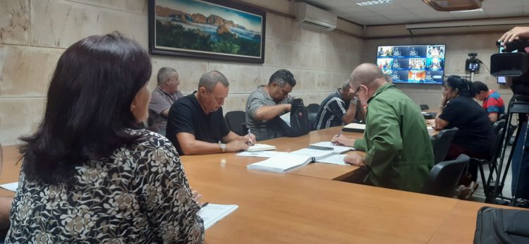 En el encuentro de trabajo, los representantes del ministerio de la agricultura, comercio interior, comunicación, entre otros, rindieron cuentas de su gestión en la protección de recursos materiales, la distribución de alimentos y la situación actual de los embalses, entre otras cuestiones. (Tomado de Granma)