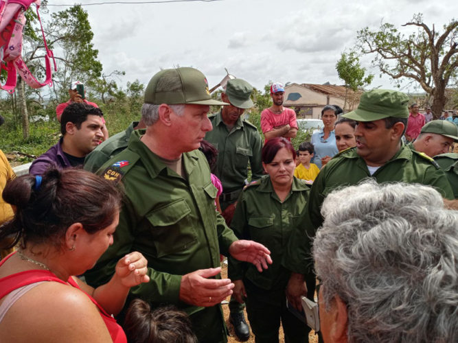 Díaz-Canel pidió prestar mucha atención a la situación del abasto de agua, a recuperar la electricidad, y en lugares donde hay grupos electrógenos podemos tener radios o televisores, para que en esos lugares donde no hay corriente la gente tenga información». (Tomado de Granma)