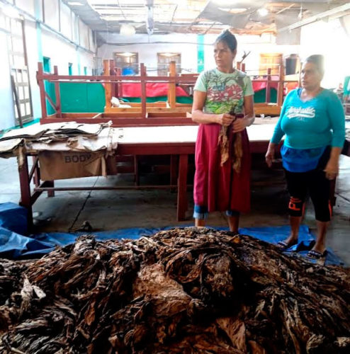 “Nos arreglamos ahí en un pedacito y así estamos”, la angustia le atraviesa la voz, y cualquiera entendería que se diera un tiempo para el lamento, pero no, está en su puesto, ayudando a recuperar las hojas de tabaco tapado, casi todas ya anteriormente beneficiadas que se mojaron por las averías que sufrieron las instalaciones de la escogida.
