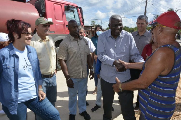 Esteban Lazo se interesó especialmente por las afectaciones fundamentales ocasionadas por el huracán Ian: 20 derrumbes totales de viviendas, cinco derrumbes parciales, 20 afectaciones de techos totales y 131 techos parciales dañados, entre otras. Paralelamente a la labor recuperativa de los inmuebles, se prevé la implementación del proyecto imagen que abarca 115 viviendas de las arterias principales de la zona.