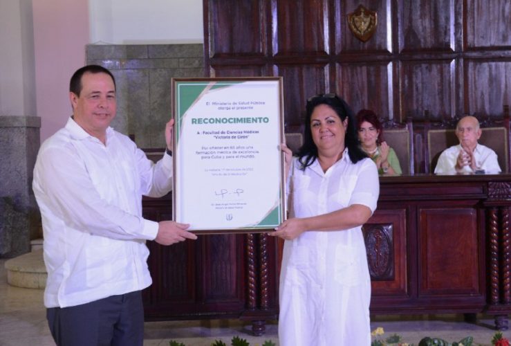 En el acto por el aniversario de la institución, convertida en 2007 en Facultad de Ciencias Médicas Victoria de Girón, fue entregada esa distinción a Manuel Marrero Cruz, primer ministro de la República, y al Comandante del Ejército Rebelde José Ramón Machado Ventura.