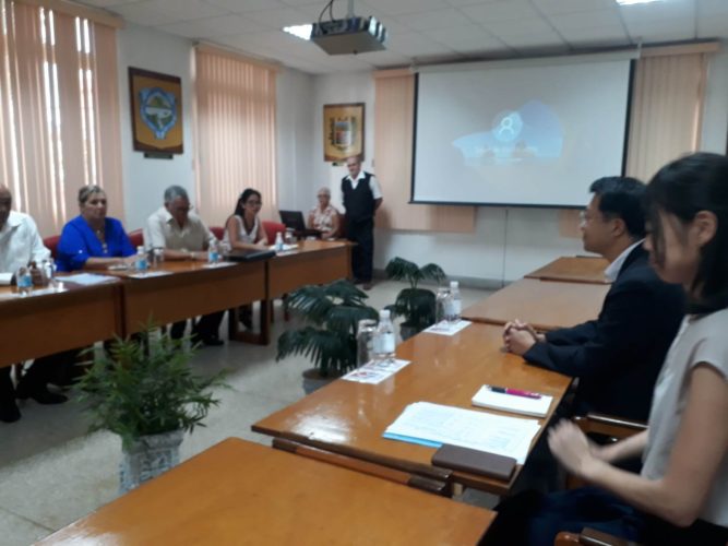 El Gobernador de Villa Clara Alberto López Díaz, dio la bienvenida al distinguido visitante, quien estaba acompañado por la Sra. Kozue Asai, coordinadora de la Asistencia Financiera No Reembolsable para Proyectos Comunitarios de Seguridad Humana.