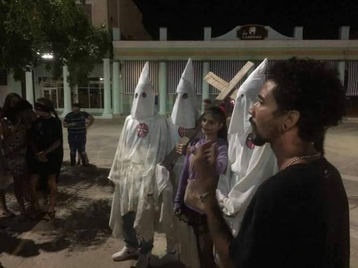 Un hecho insólito acaeció recientemente en la ciudad de Holguín. Según refieren testimonios que circulan en las redes sociales, un grupo de jóvenes, salieron a la calle luego de celebrar Halloween en un espacio que alquilaron, en el momento final de su fiesta, se fueron a la vía pública encapuchados de blanco con las insignias del KKK y una cruz, con gritos agresivos y provocadores como “¿Dónde están los negros?”.