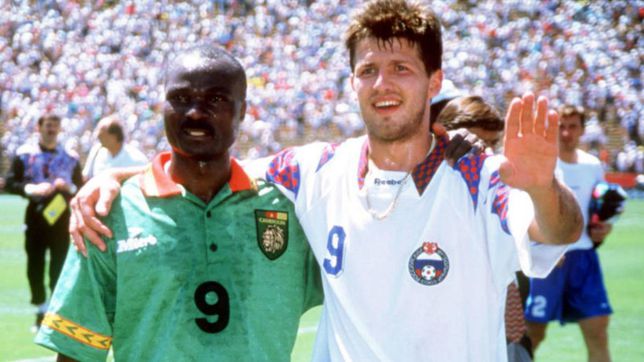 El 28 de junio de 1994, en el Stanford Stadium de California, el buitre ruso alineó ante el combinado camerunés de Songo’o, Roger Milla y compañía. Los euroasiáticos tenían una pequeña esperanza de clasificación y Salenko estaba dispuesto a hacer todo lo que estuviera a su alcance.