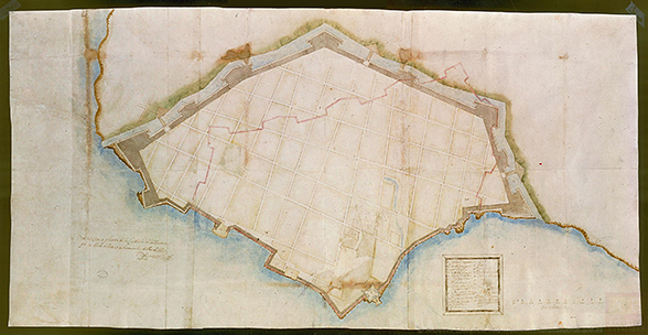 Durante el gobierno de Pedro Valdés (1602-1608), el ingeniero militar Cristóbal de Roda Antonelli, miembro de la familia italiana Antonelli, de tradición en la construcción de fortificaciones, levantó el primer plano del espacio que ocupaba la ciudad en 1603. En él aparece el trazo de dos murallas: a una la llamó Cerca Vieja, dibujada en color carmín e identificada con el número ocho; y a la otra, Cerca Nueva, que nunca llegó a erigirse, pero confirma la existencia de un proyecto que merecía ser perfeccionado.
