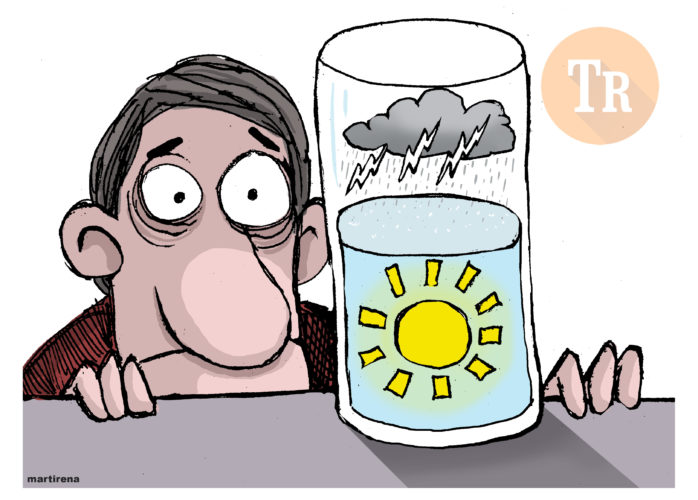 Bastante conocida resulta entre nosotros esa analogía, no sin ciertos alcances filosóficos, de que hay un grupo de personas que ven un vaso medio vacío donde otra parte ve un vaso medio lleno, en correspondencia directa con el estado anímico y las posturas que cada quien tiene ante la vida.