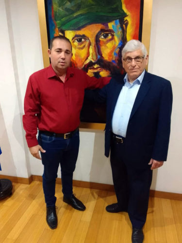 Carlos Rafael Zamora, embajador de Cuba, recibió al dirigente sindical y sostuvieron un ameno diálogo. Foto: SNTC.