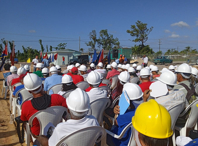 Arianna Díaz Carrillo, joven que labora en la Empresa de Construcción y Montaje (ATTAI), ratificó a nombre del colectivo la voluntad de mantenerse a la vanguardia en los aportes que hagan desde el sector para resarcir las pérdidas de la población, especialmente en el fondo habitacional; no fue casual que escogieran para la conmemoración una de las comunidades que edifican con viviendas de tipología IV que recibirán damnificados cuyas moradas fueron derrumbes totales.