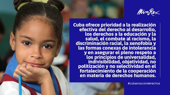 El Gobierno cubano mantiene su firme voluntad de continuar fortaleciendo y perfeccionando la promoción y protección de los derechos humanos para todos, a pesar de la obsoleta política de bloqueo económico, comercial y financiero que por seis décadas han mantenido sucesivas administraciones de los EE.UU. contra el país.