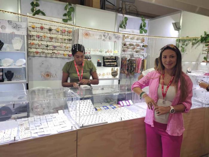 -La marca NOHA, la promocionamos hace más de 20 años a nivel mundial, y principalmente trabajamos en Colombia. Tenemos joyería de todo tipo, manejamos el metal de la plata 925, pero también la artesanía con baño en bronce. Todo está elaborado a mano, tejido por mujeres colombianas, cabezas de familia. Buscamos el empoderamiento femenino, y como vemos acá, el 100 por ciento de nuestras colaboradoras son también mujeres.
