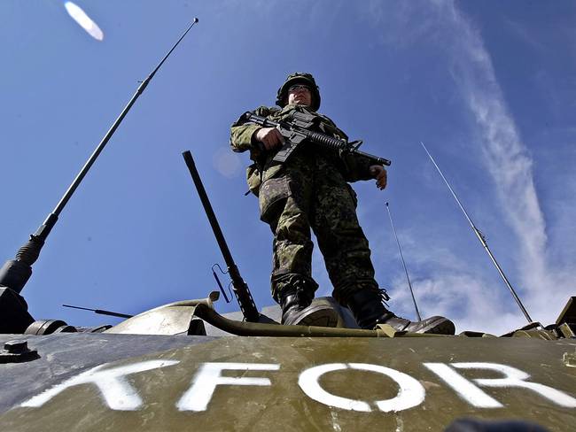 La Fuerza Internacional de Seguridad para Kosovo (KFOR) de la OTAN dispuesta a intervenir si peligra la estabilidad en el norte de Kosovo Foto: AFP