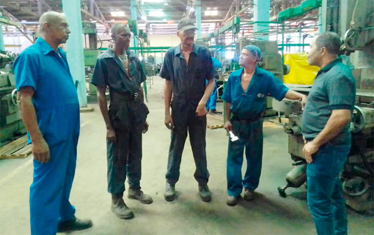 De las inquietudes e insatisfacciones de los trabajadores bien conoce Blas Suárez, secretario general del Sindicato de Industrias en la provincia (primero a la derecha), quien junto a la dirección sindical y administrativa del centro pelea a todos los niveles por enmendar entuertos. Foto: Betty Beatón Ruiz