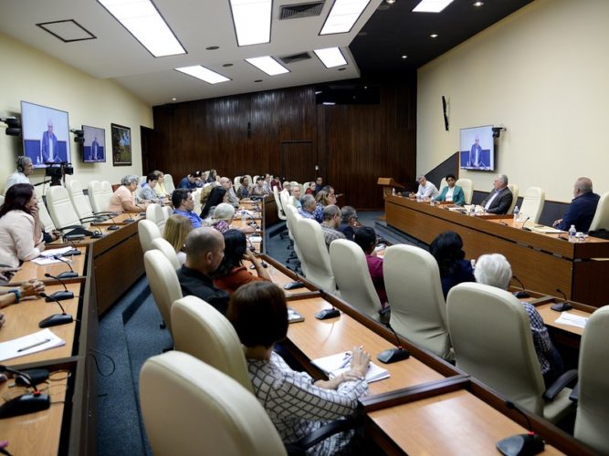 «¿Cómo lograrlo?», insistió el dignatario en un encuentro que también contó desde la presidencia con el Miembro del Buró Político y Primer Ministro, Manuel Marrero Cruz; así como con los viceprimeros ministros Inés María Chapman Waugh, y Jorge Luis Perdomo Di-Lella.