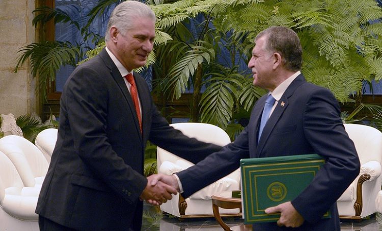 Al recibir las acreditaciones del excelentísimo señor Ghassan Obeid, embajador de la República Árabe Siria, el presidente isleño expresó los sentimientos de aprecio hacia esa «amiga y hermana» nación y la admiración hacia su pueblo por la resistencia heroica, como la del pueblo cubano, ante las agresiones y sanciones.