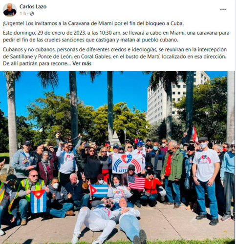 Miami y distintas ciudades del mundo celebrarán el próximo domingo otra caravana por el levantamiento del bloqueo de Estados Unidos a Cuba, que esta vez honrará a José Martí, confirmó hoy el activista Carlos Lazo.