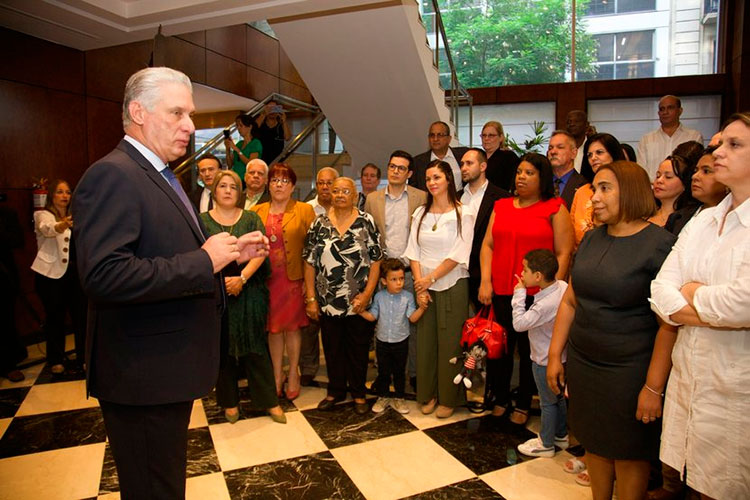 BUENOS AIRES, Argentina.-Especial gratitud a quienes integran la Misión Estatal de la Isla en el país sureño extendió este miércoles el Presidente cubano, Miguel Díaz-Canel Bermúdez, por todo el trabajo que han hecho como Embajada para el desarrollo exitoso de la VII Cumbre de la Comunidad de Estados Latinoamericanos y Caribeños (CELAC).