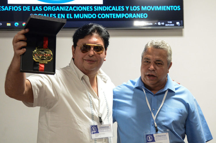 En el espacio, la delegación azteca entregó a Guilarte de Nacimiento la presea Primer Centenario de la Casa del Obrero Mundial, que otorgan en México a los líderes más destacados del sindicalismo, y le fue concedida a Andrés Manuel López Obrador, actual presidente de esa nación. (Tomado de ACN)