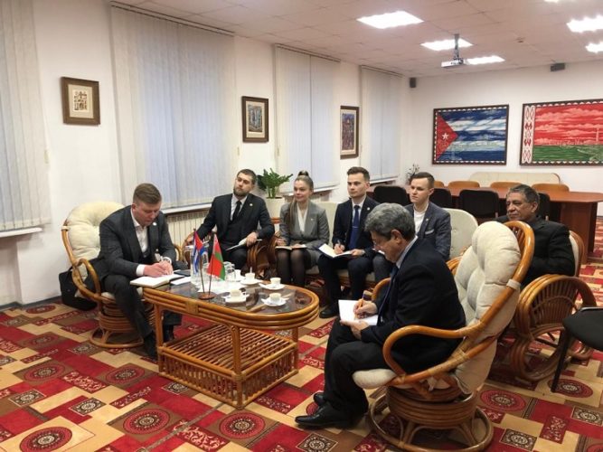 Por la parte cubana participaron también Mirthia Julia Brossard, jefa del Departamento de Relaciones Internacionales de la Unión de Jóvenes Comunistas (UJC); Jesús Rafael Mora, funcionario de la comisión de Relaciones Internacionales de la Asamblea Nacional; y el embajador cubano en Minsk, Santiago Pérez Benítez.