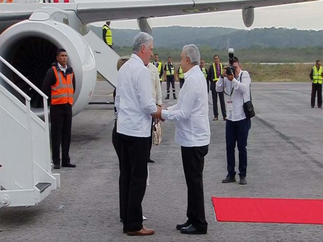 CAMPECHE, México.- «Bienvenido presidente Miguel Díaz-Canel, es muy satisfactorio, un honor, recibirlo aquí en Campeche, en nuestro país, que es el suyo en su calidad de dirigente del pueblo digno de Cuba», expresó el presidente de México, Andrés Manuel López Obrador (AMLO), al recibir en el aeropuerto internacional de esta ciudad al Primer Secretario del Comité Central del Partido Comunista y Presidente de la República de Cuba.