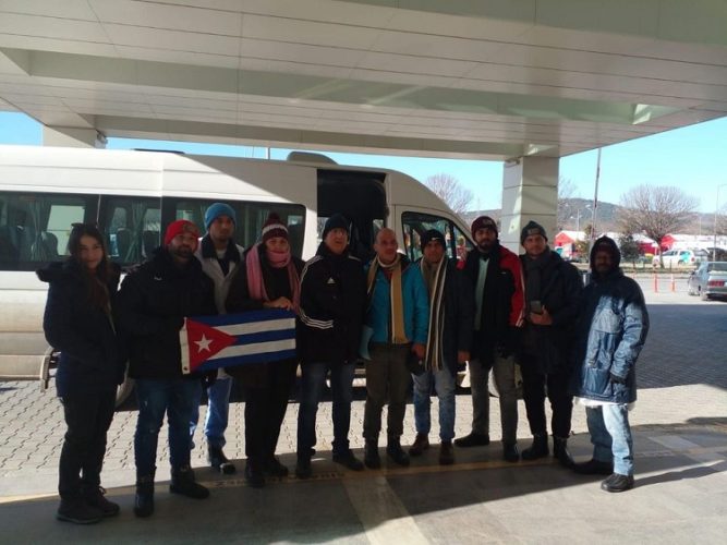 «En la mañana de hoy, 8 de los 32 colaboradores, acompañados por 1 traductor, se trasladaron hacia la localidad de Büyükyapalak Elbistan/Provincia Kahramanmaraş , donde permanecerán durante 7 días, en una clínica médica que estará atendida totalmente por personal cubano».