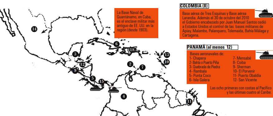 Actualmente, Estados Unidos extiende en más de 100 países del mundo una cifra que supera las 800 bases militares, de las cuales 76 permanecen en la región de América Latina. (Tomado de ACN)
