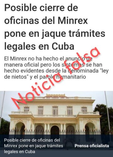 «Desmentimos las informaciones falsas que están circulando en las plataformas digitales sobre el cierre nuestra oficina de legalización de documentos. @CubaMINREX reitera que la legalización de documentos continúa realizándose con la intensidad acostumbrada de forma ininterrumpida».