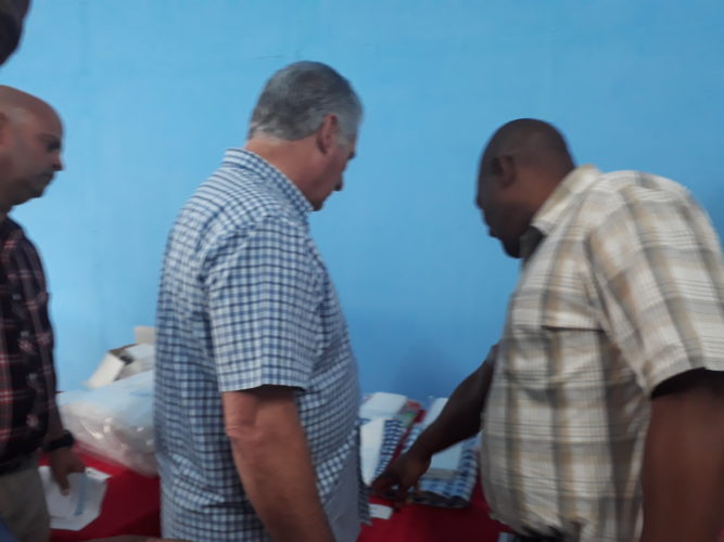 Hasta este centro, con dificultades de materias primas y alto consumidor de energía, el que ha encontrado opciones para mantener activa la empresa estatal socialista, llegaron los ocho candidatos a diputados por Santa Clara este jueves, entre los que se encuentra Miguel Díaz-Canel Bermúdez, Primer Secretario del Partido Comunista de Cuba (PCC) y Presidente de la República.