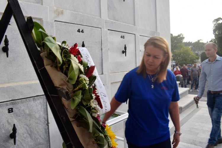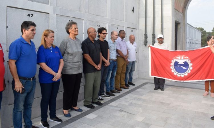 Como cada año, ante su tumba en el Panteón de las Fuerzas Armadas Revolucionarias, en el cementerio de Colón, en La Habana, se dieron cita integrantes de la máxima dirección de la Central de Trabajadores de Cuba (CTC) encabezados por Isdalis Rodríguez Rodríguez, miembro del Comité Central del Partido Comunista de Cuba y segunda secretaria de la CTC y acompañados por Aila y Lázaro, hijos del inolvidable Maestro de cuadros sindicales.