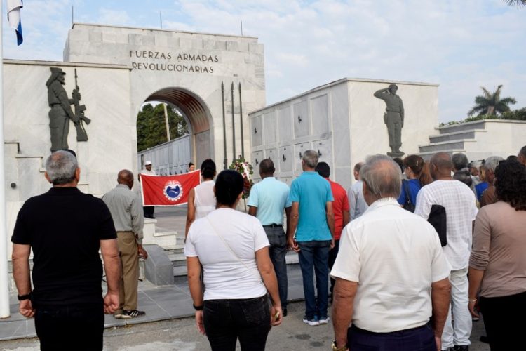 Tras la colocación de una ofrenda floral en nombre de los trabajadores cubanos y con la bandera de la CTC al frente, una representación afiliados a diversos sindicatos en la capital junto a sus dirigentes depositaron flores como parte del merecido tributo.