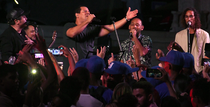 Junto a la plataforma de los artistas, todo un equipo con uniforme azul puso al béisbol en el contexto. Antesala de batallas ganadas y ojalá por venir, signo de esa diplomacia del deporte que hace vibrar como factor común a las grandes masas.