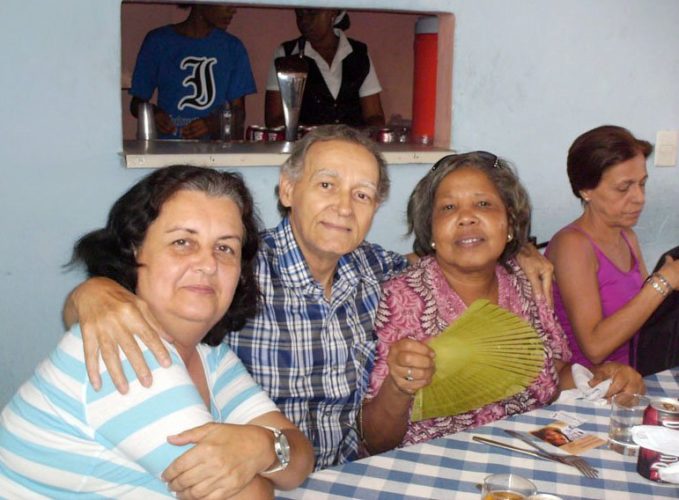 La recuerdo sencilla, jaranera, cariñosa, siempre amiga. En la foto estamos ella y yo abrazadas por mi esposo, Israel, también periodista ya fallecido,mientras compartíamos con el colectivo una actividad del periódico.