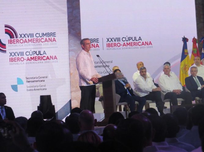 Al intervenir en la sesión plenaria de la Cumbre, Abinader resaltó el trabajo llevado a cabo por la Secretaría General Iberoamericana, y dijo que «la agenda que tenemos por delante ha sido el fruto de intensas jornadas en las reuniones ministeriales y foros que durante estos dos años se han realizado en República Dominicana y otros países».
