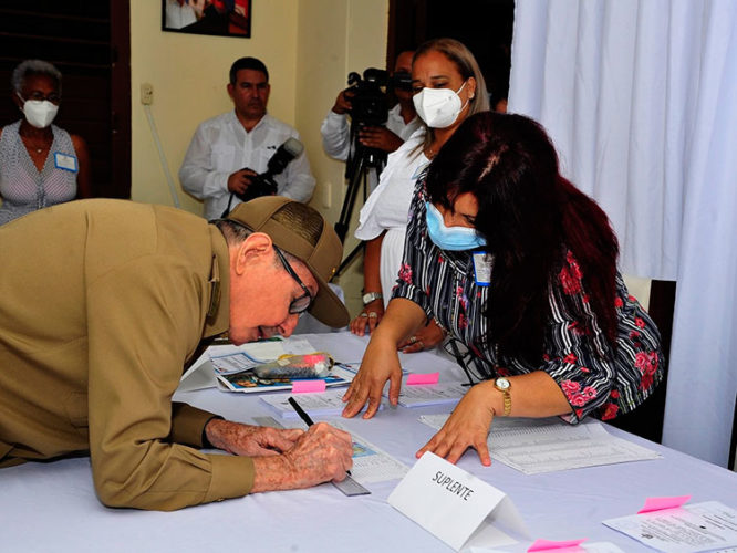 Ya en el colegio, el General de Ejército también saludó a los integrantes de la mesa electoral y, tras cumplir con el procedimiento de rigor, le fue entregada la boleta, con una candidatura compuesta, como tantas a lo largo y ancho del archipiélago, por dos jóvenes valiosos: Denisse Ricardo Estrada, viceintendente del Consejo de la Administración Municipal de Playa; y Carlos Miguel Pérez Reyes, director de la mipyme Dofleini Software.