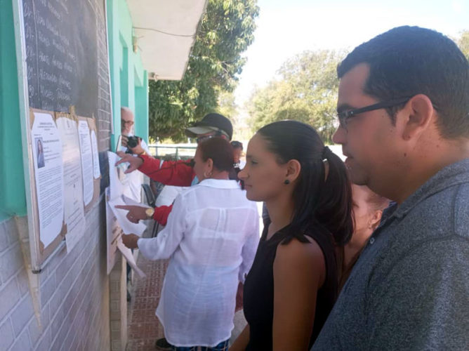 Ya se ha hecho habitual que Yolanda Quesada Piñón y su esposo, Jorge Villarejo Hernández, sean los primeros en votar en el colegio electoral 2, de la circunscripción 60 del consejo popular de Junco Sur, perteneciente al distrito electoral 2 en el municipio de Cienfuegos. (Tomado de 5 de Septiembre)