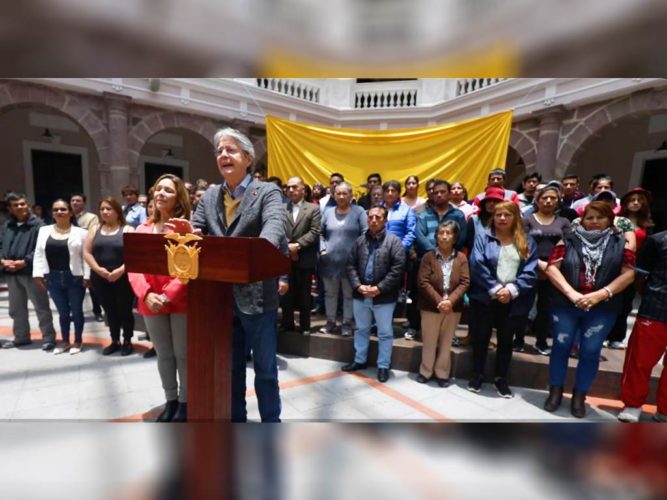 Para Lasso, el juicio político se sustenta en pruebas fraudulentas y señaló que los jueces de la Corte recibieron presiones, en alusión a los plantones y protestas de organizaciones sociales a favor de su salida del poder no solo por los hechos de corrupción, sino por el abandono estatal.