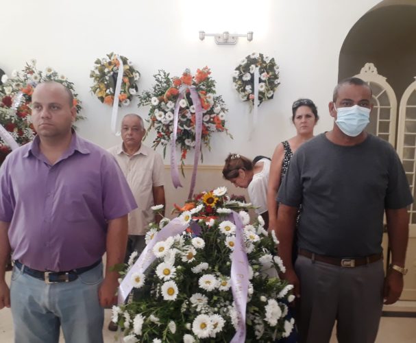 Una ofrenda floral del presidente Miguel Díaz-Canel Bermúdez acompañó las honras fúnebres de Alexis Bernardo Labrada Junco, fallecido en accidente de la Cte Antonio Guiteras.