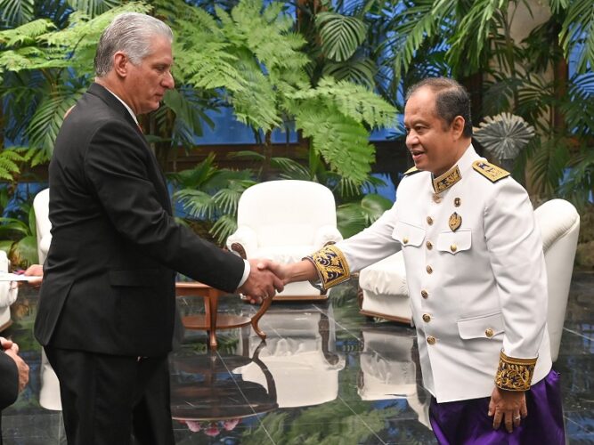 Justo en el aniversario 63 del establecimiento de las relaciones diplomáticas entre Cuba y el Reino de Cambodia, el Presidente cubano recibió las Cartas Credenciales del excelentísimo señor Chea Thireak, nuevo embajador de esa nación en la Mayor de las Antillas.