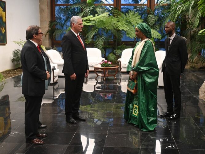 “Cuba siempre ha apoyado a los países de África y ha estado ahí para nosotros, por eso todo nuestro apoyo estará siempre para Cuba”, aseguró la excelentísima señora Issoufou Aicha, embajadora de la República de Níger en Cuba, al ser recibida por el Presidente de la República en el Palacio de la Revolución.