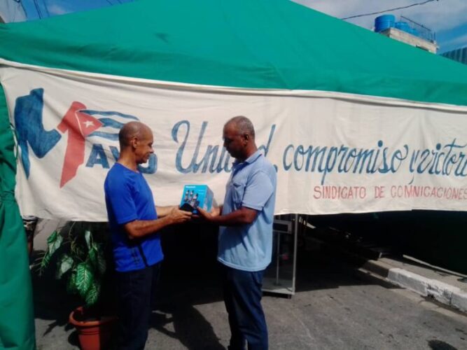 El Sindicato de las Comunicaciones presente igualmente para mostrar su quehacer de servicios básicos a la población. Foto: Betty Beatón