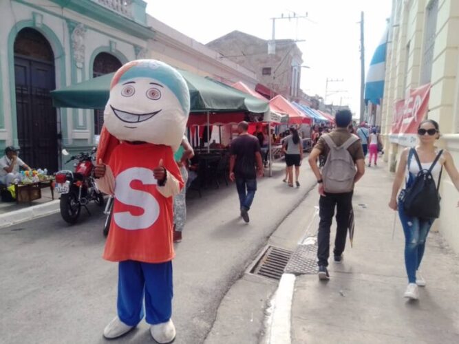Las iniciativas no faltan: Chaguito, mascota identificativa de Santiago de Cuba y lo santiagueros, se hace presente en la Feria. Foto: Betty Beatón