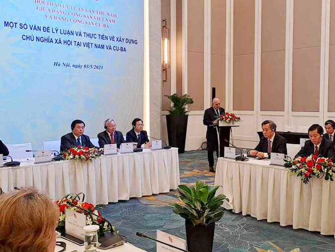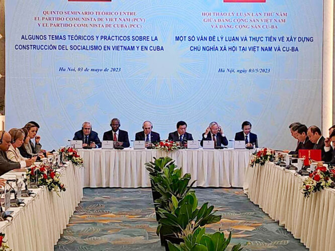 El también secretario de Organización del Comité Central del PCC intervino en la sesión de apertura del V Seminario Teórico-Práctico de los Partidos Comunistas de Vietnam (PCV) y Cuba, el cual catalogó como “una prueba de la madurez que han alcanzado los nexos entre nuestros dos partidos hermanos”.