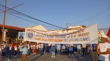Los afiliados al Sindicato de Trabajadores de Energía y Minas conforman el primer bloque de esta colorida y entusiasta marcha en la tierra del mejor tabaco del mundo.