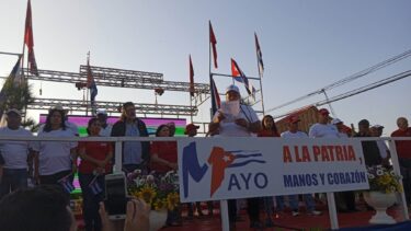 Inició el desfile tras entonar las notas del Himno Nacional y una breve alocución del secretario general de la Central de Trabajadores de Cuba (CTC) en la provincia, Rubén Lloga Sixto, quién exigió a nombre del movimiento obrero pinareño el cese del bloqueo económico, comercial y financiero de Estados Unidos a esta Isla.