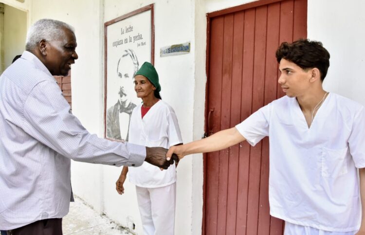 En medio del trayecto, el Presidente de la Asamblea Nacional se detuvo a conversar en plena calle con los estudiantes de la Escuela Secundaria Básica «Urselia Díaz Báez» sobre la importancia de la historia, la formación de valores en nuestra sociedad, del estudio y del trabajo.