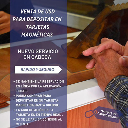 De acuerdo con la comunicación, se mantiene el monto máximo de 100 dólares estadounidenses para la venta a los clientes, que con el nuevo servicio podrán depositar en su tarjeta magnética.