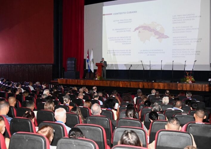 Gratitud por la oportunidad de compartir conceptos en la apertura de la Convención Científica Internacional estuvo entre las primeras expresiones del Presidente Díaz-Canel, quien comenzó a explicar a los presentes en qué consiste el “Sistema de Gestión de Gobierno basada en Ciencia e Innovación (SGGCI)”.
