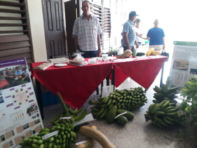 El Instituto de Investigaciones de Viandas Tropicales (INIVIT) expuso el inicio de la aplicación del ozonocomo una oportunidad en la agricultura, trabajos sobre mejoras biotecnológicas genéticas a los cultivos y diferentes opciones alimenticias con la harina de yuca, que sustituye la de trigo, entre ellas kake,mantecados y panqué. Por su parte la empresa apícola del territorio exhibió las variedades de productosque elaboran derivados de la miel