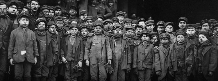El trabajo infantil fue una práctica común en la etapa de la Revolución Industrial. A las familias pobres no les quedaba más remedio para garantizar la subsistencia. Trabajaban en condiciones miserables y con menos paga en las minas, en la agricultura, en la industria textil, en fábricas de vidrio o de conservas, limpiaban zapatos, repartían periódicos, eran mensajeros o vendedores ambulantes…